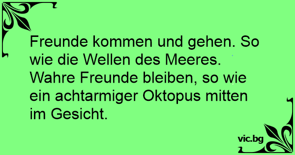 Freunde kommen und gehen. So wie die Wellen des Meeres. Wahre Freunde bleiben, so wie ein achtarmiger Oktopus mitten im Gesicht.