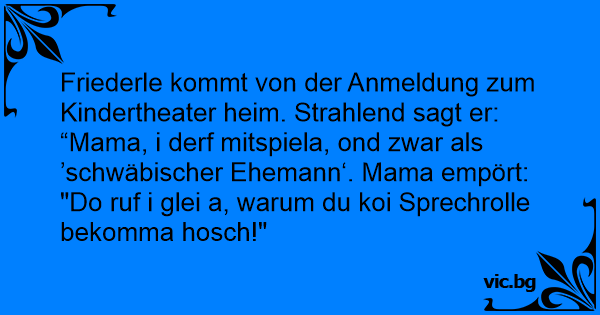 “Mama, i derf mitspiela, ond zwar als ’schwäbischer Ehemann‘. Mama empört: