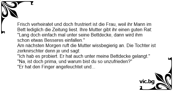 Frisch verheiratet und doch frustriert ist die Frau, weil ihr Mann im Bett lediglich die Zeitung liest. Ihre Mutter gibt ihr einen guten Rat: