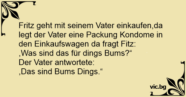 Fritz geht mit seinem Vater einkaufen,da legt der Vater eine Packung Kondome in den Einkaufswagen da fragt Fitz: