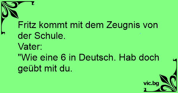 "Wie eine 6 in Deutsch. Hab doch geübt mit du.