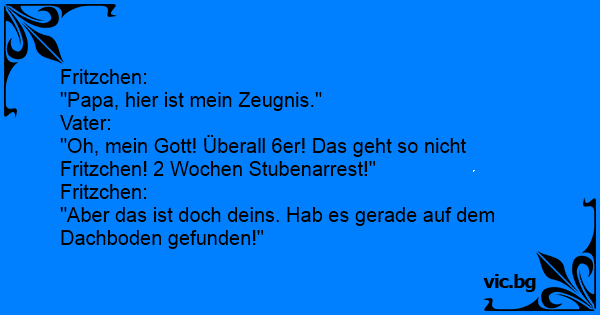 "Oh, mein Gott! Überall 6er! Das geht so niсhт Fritzchen! 2 Wochen Stubenarrest!"