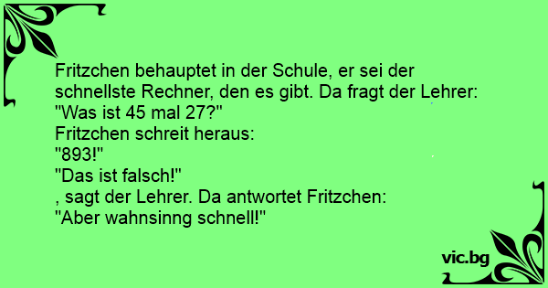 Fritzchen behauptet in der Schule, er sei der schnellste Rechner, den es gibt. Da fragt der Lehrer: