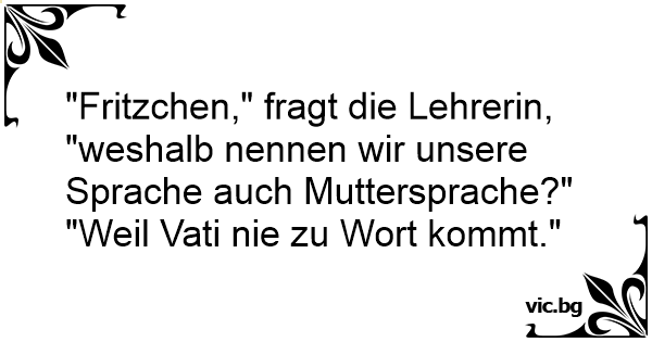 "Fritzchen," fragt die Lehrerin, "weshalb nennen wir unsere Sprache auch Muttersprache?"
