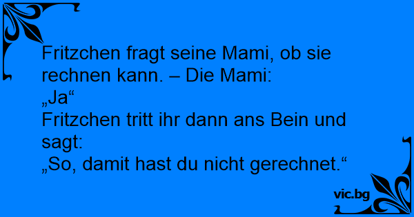 Fritzchen fragt seine Mami, ob sie rechnen kann. – Die Mami: