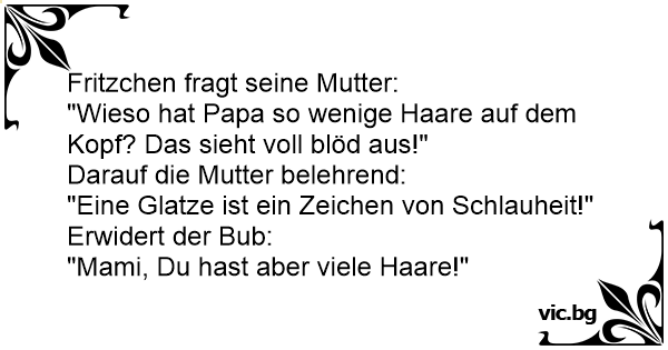 "Wieso hat Papa so wenige Haare auf dem Kopf? Das sieht voll blöd aus!"