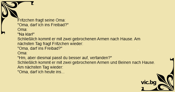 Schließlich kommt er mit zwei gebrochenen Armen nach Hause. Am nächsten Tag fragt Fritzchen wieder: