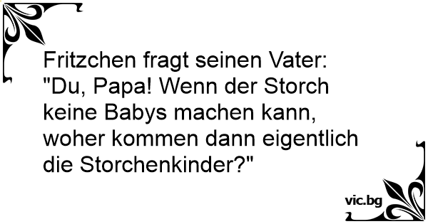 "Du, Papa! Wenn der Storch keine Babys machen kann, woher kommen dann eigentlich die Storchenkinder?"