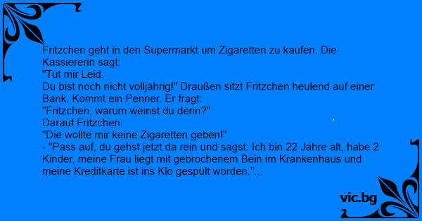 Fritzchen geht in den Supermarkt um Zigaretten zu kaufen. Die Kassiererin sagt: