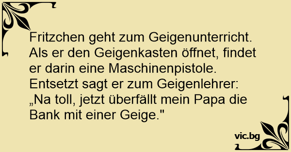 На борец сина влиза закъснял за час в музиклалната школа! Скарва му се учителят и го праща на мястото му! Отива той, отваря калъфа на цигулката и изведнъж почва да се хили!