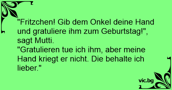 "Fritzchen! Gib dem Onkel deine Hand und gratuliere ihm zum Geburtstag!", sagt Mutti.