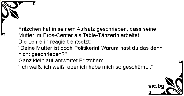 Fritzchen hat in seinem Aufsatz geschrieben, dass seine Mutter im Eros-Center als Table-Tänzerin arbeitet.