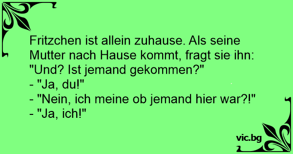 Fritzchen ist allein zuhause. Als seine Mutter nach Hause kommt, fragt sie ihn: