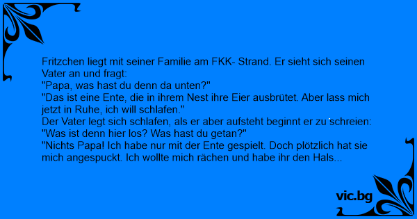 Fritzchen liegt mit seiner Familie am FKK- Strand. Er sieht sich seinen Vater an und fragt: