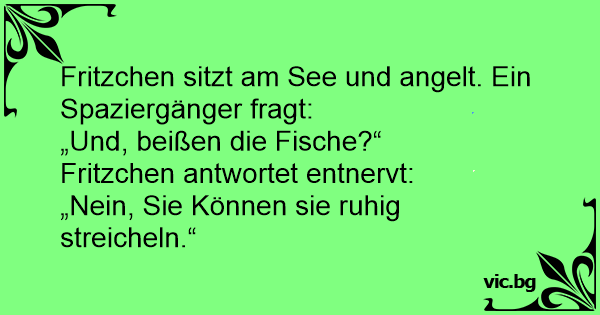 Fritzchen sitzt am See und angelt. Ein Spaziergänger fragt: