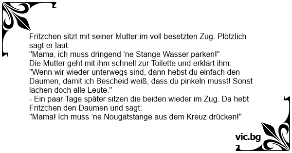 Fritzchen sitzt mit seiner Mutter im voll besetzten Zug. Plötzlich sagt er laut: