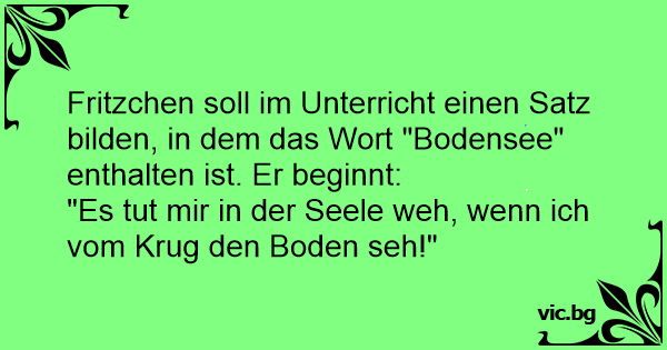 Fritzchen soll im Unterricht einen Satz bilden, in dem das Wort "Bodensee" enthalten ist. Er beginnt:
