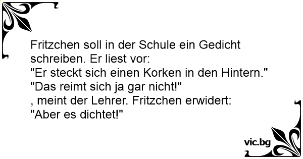 Fritzchen soll in der Schule ein Gedicht schreiben. Er liest vor: