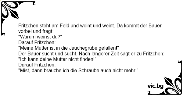 Fritzchen steht am Feld und weint und weint. Da kommt der Bauer vorbei und fragt: