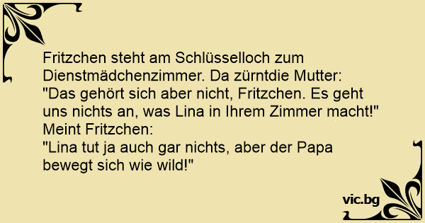 Fritzchen steht am Schlüsselloch zum Dienstmädchenzimmer. Da zürntdie Mutter: