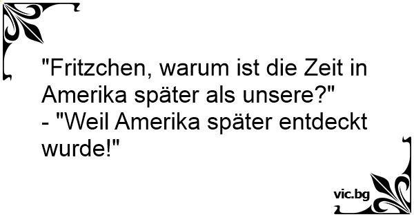 "Fritzchen, warum ist die Zeit in Amerika später als unsere?"