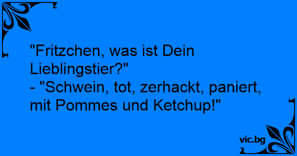 - "Schwein, tot, zerhackt, paniert, mit Pommes und Ketchup!"