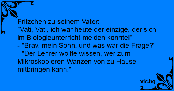 "Vati, Vati, ich war heute der einzige, der sich im Biologieunterricht melden konnte!"