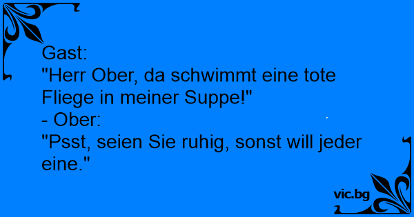 "Herr Ober, da schwimmt eine tote Fliege in meiner Suppe!"
