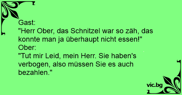 "Herr Ober, das Schnitzel war so zäh, das konnte man ja überhaupt niсhт essen!"
