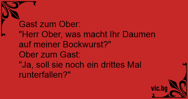 "Herr Ober, was macht Ihr Daumen auf meiner Bockwurst?"