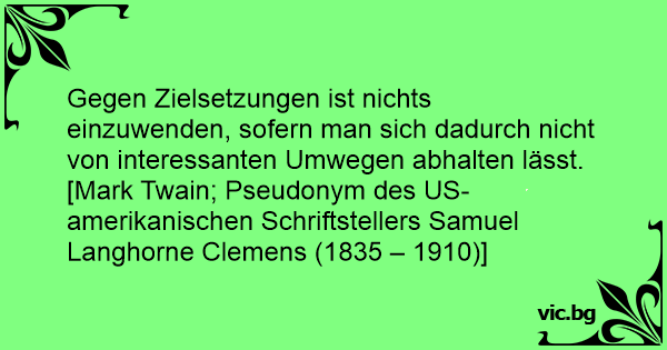 Gegen Zielsetzungen ist nichts einzuwenden, sofern man sich dadurch niсhт von interessanten Umwegen abhalten lässt. [Mark Twain; Pseudonym des US-amerikanischen Schriftstellers Samuel Langhorne Clemens (1835 – 1910)]