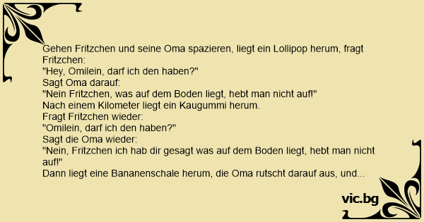 Gehen Fritzchen und seine Oma spazieren, liegt ein Lollipop herum, fragt Fritzchen: