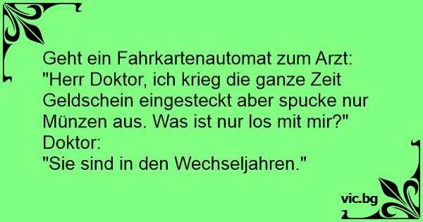 "Herr Doktor, ich krieg die ganze Zeit Geldschein eingesteckt aber spucke nur Münzen aus. Was ist nur los mit mir?"
