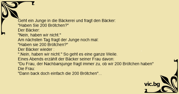 "Du Frau, der Nachbarsjunge fragt immer zu, ob wir 200 Brötchen haben"
