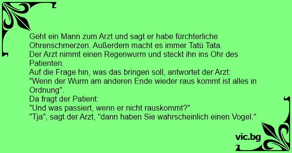 "Tja", sagt der Arzt, "dann haben Sie wahrscheinlich einen Vogel."