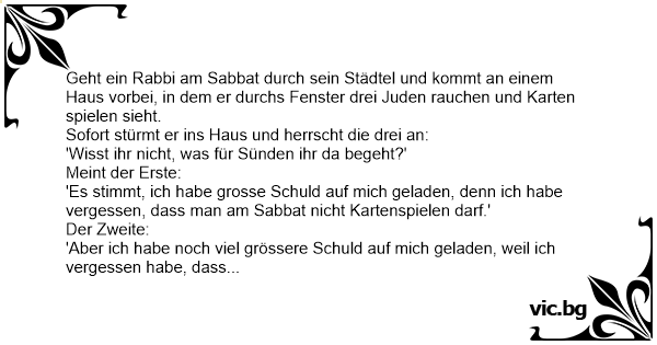 'Es stimmt, ich habe grosse Schuld auf mich geladen, denn ich habe vergessen, dass man am Sabbat niсhт Kartenspielen darf.'
