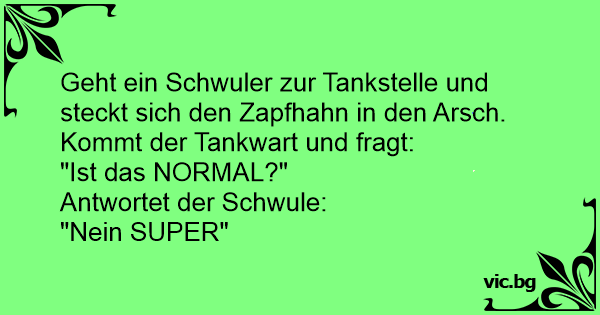 Geht ein Schwuler zur Tankstelle und steckt sich den Zapfhahn in den Аrsсh.