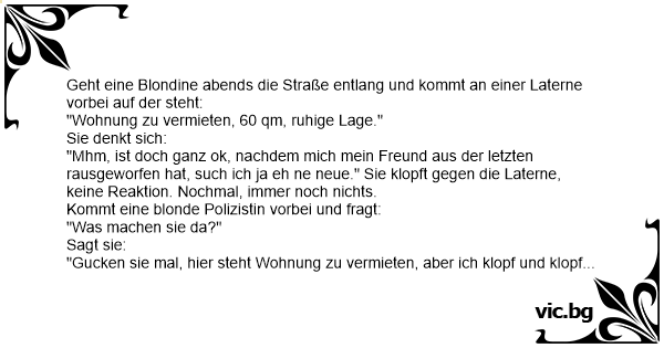 Geht eine Blondine abends die Straße entlang und kommt an einer Laterne vorbei auf der steht: