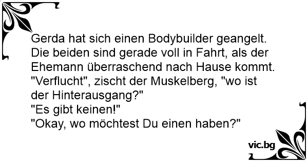 "Verflucht", zischt der Muskelberg, "wo ist der Hinterausgang?"