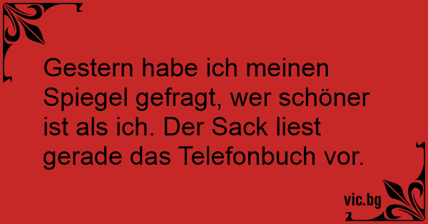 Gestern habe ich meinen Spiegel gefragt, wer schöner ist als ich. Der Sack liest gerade das Telefonbuch vor.