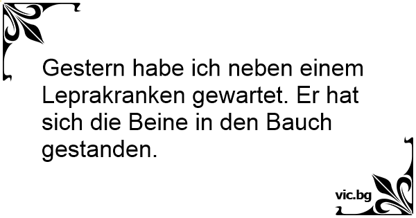 Gestern habe ich neben einem Leprakranken gewartet. Er hat sich die Beine in den Bauch gestanden.