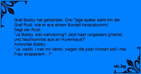 Graf Bobby hat geheiratet. Drei Tage später sieht ihn der Graf Rudi, wie er aus einem Bordell herauskommt.