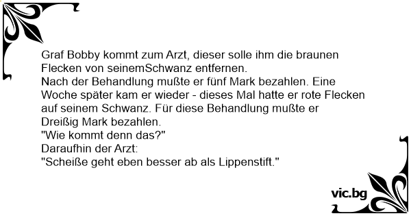 Graf Bobby kommt zum Arzt, dieser solle ihm die braunen Flecken von seinemSchwanz entfernen.