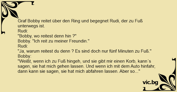 "Weißt, wenn ich zu Fuß hingeh, und sie gibt mir einen Korb, kann´s sagen, sie hat mich gehen lassen. Und wenn ich mit dem Auto hinfahr, dann kann sie sagen, sie hat mich abfahren lassen. Aber so..."