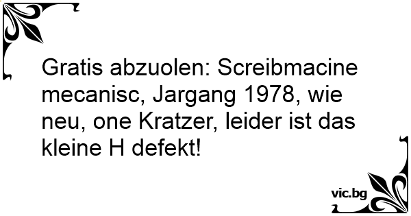 Gratis abzuolen: Screibmacine mecanisc, Jargang 1978, wie neu, one Kratzer, leider ist das kleine H defekt!