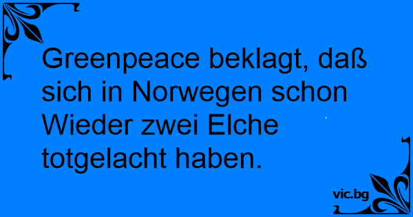 Greenpeace beklagt, daß sich in Norwegen schon Wieder zwei Elche totgelacht haben.