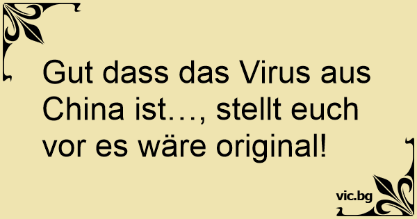 Gut dass das Virus aus China ist…, stellt euch vor es wäre original!