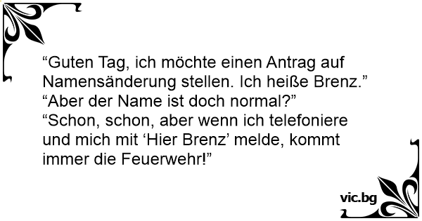 “Guten Tag, ich möchte einen Antrag auf Namensänderung stellen. Ich heiße Brenz.”
