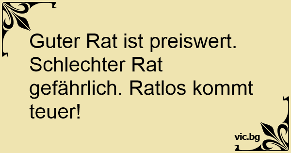 Guter Rat ist preiswert. Schlechter Rat gefährlich. Ratlos kommt teuer!