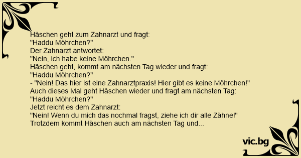 - "Nein! Das hier ist eine Zahnarztpraxis! Hier gibt es keine Möhrchen!"